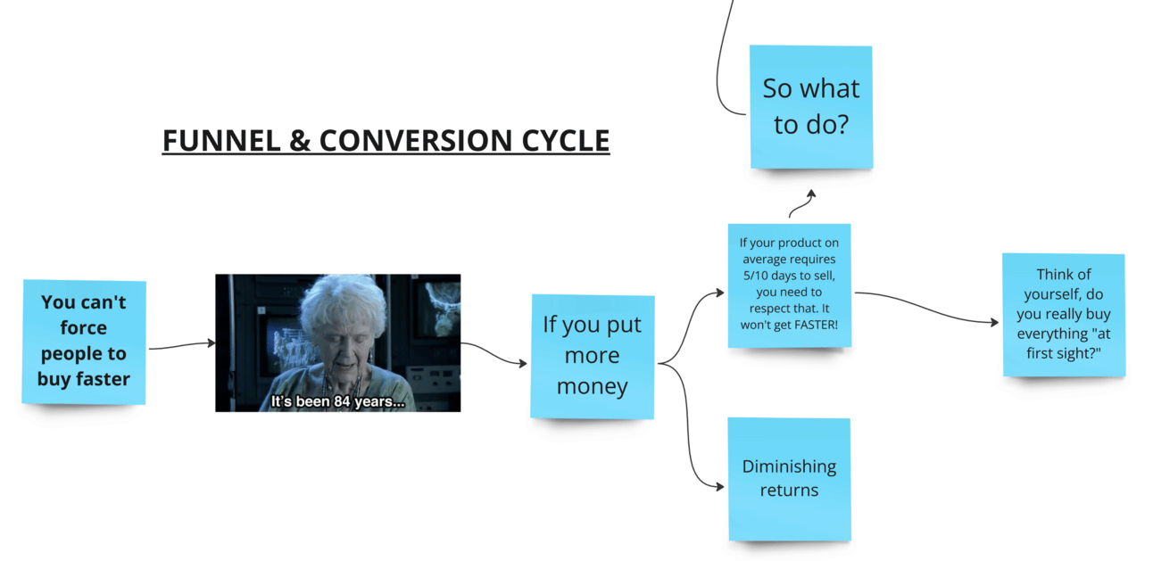 When starting marketing with little to no brand awareness, we can't expect sales from a small investment, a couple of days of ads on Facebook or Google and no research.